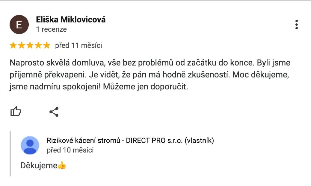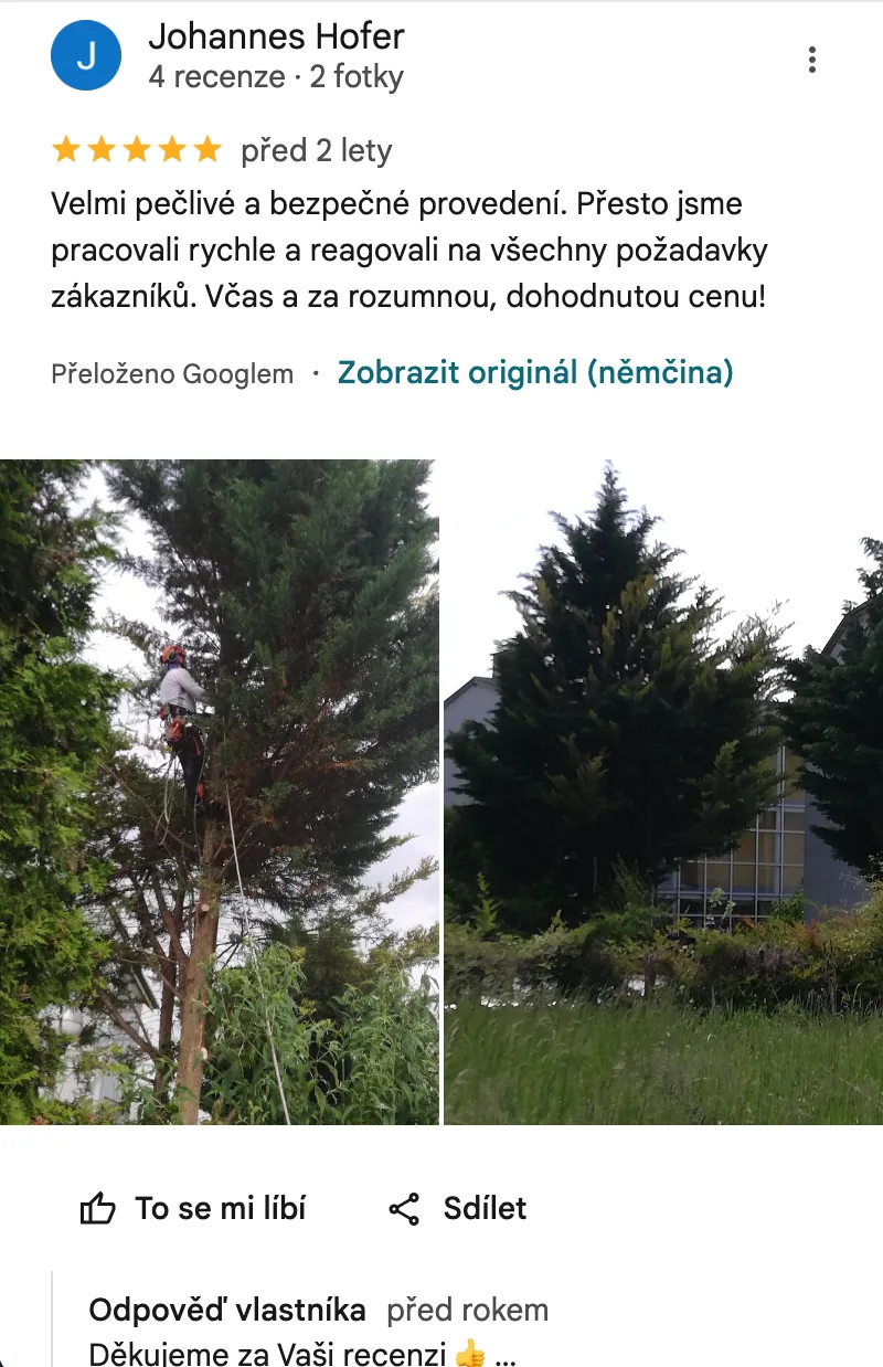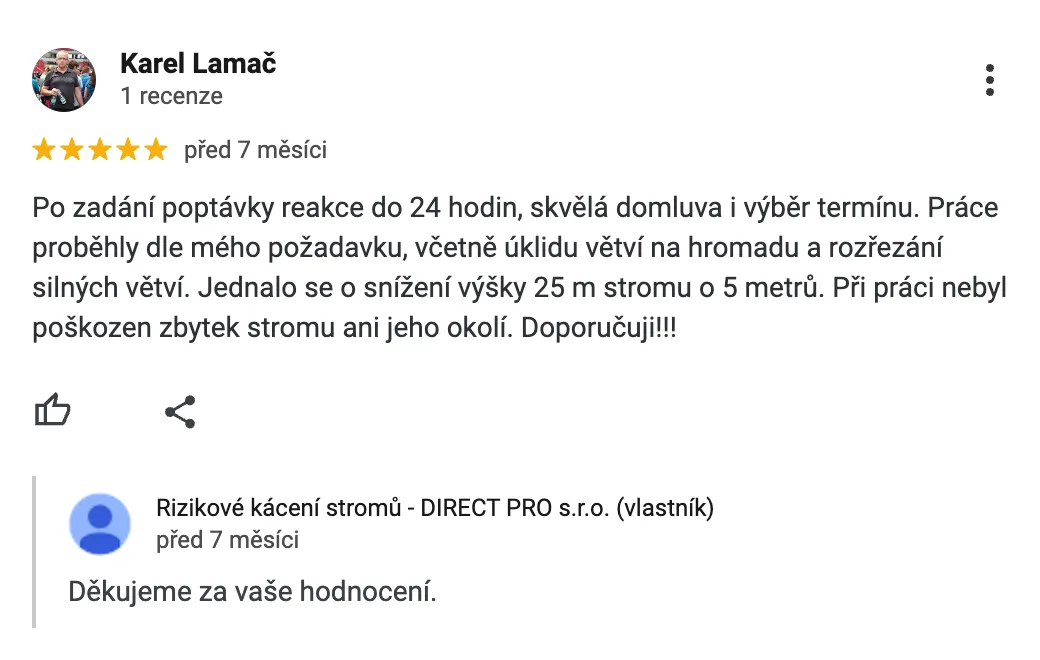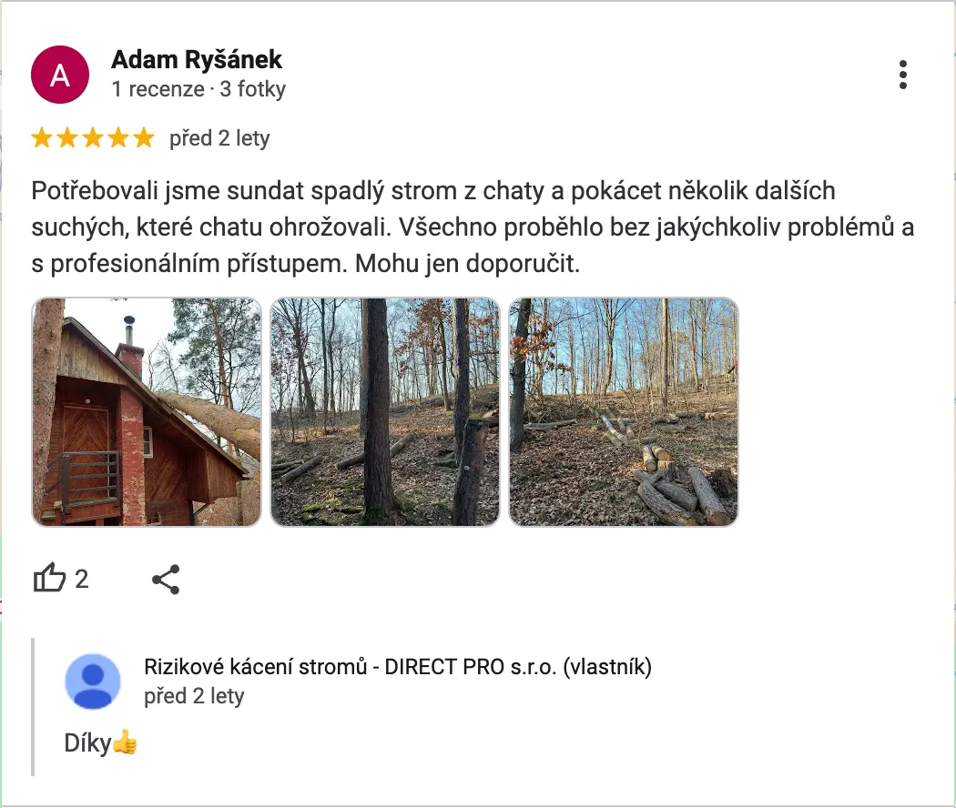 Samotné kácení + úklid většinou stihneme do 1 dne.